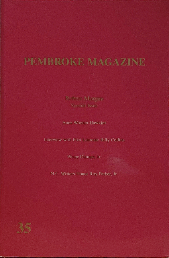Pembroke Magazine, No. 35 (2003) features the work of North Carolina's own Robert Morgan. Also: work by Anna Wooten Hawkins, Victor Dalmas, Jr., an interview with Billy Collins, and much more. North Carolina Writers honor Roy Parker, Jr.
